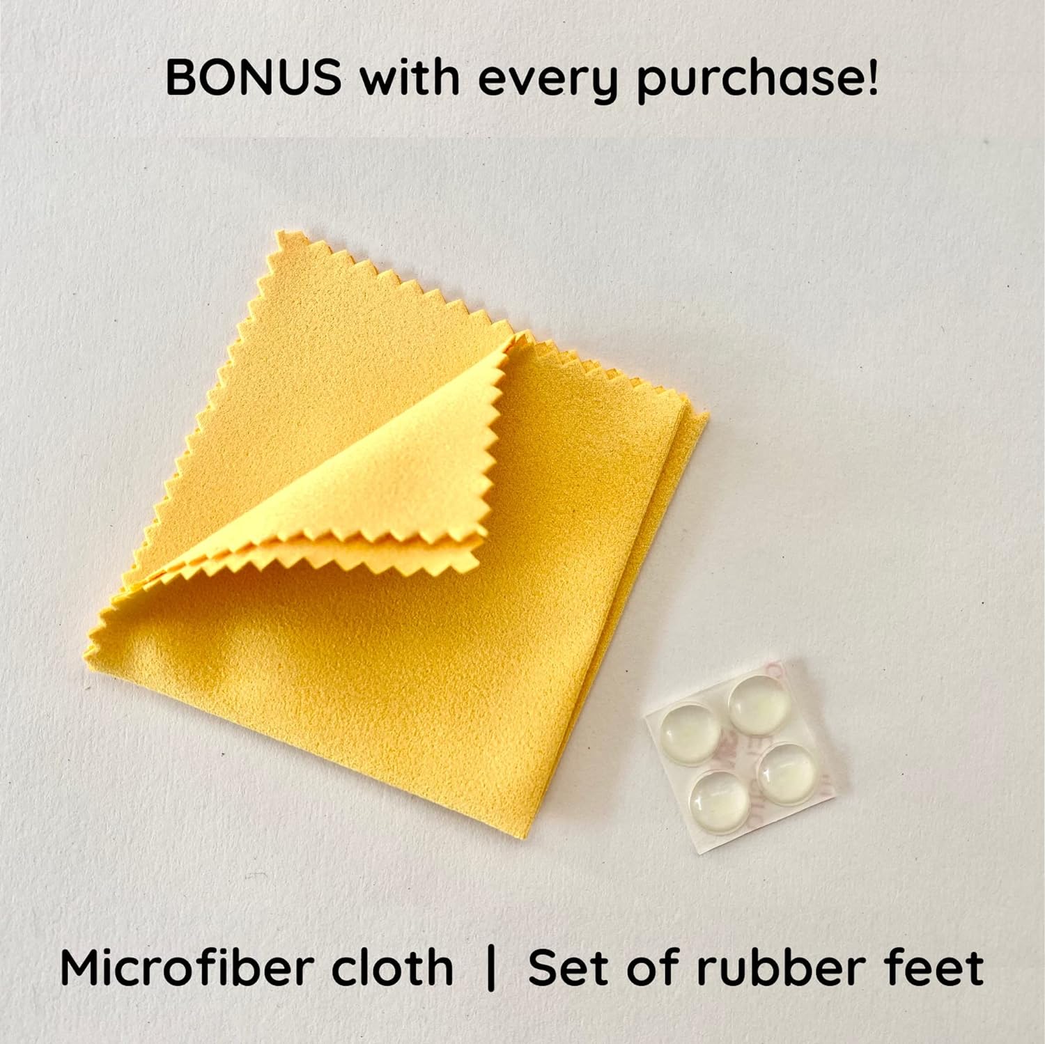 FREE EXTRAS: Includes optional rubber feet attachments and premium microfiber cleaning cloth for maintenance